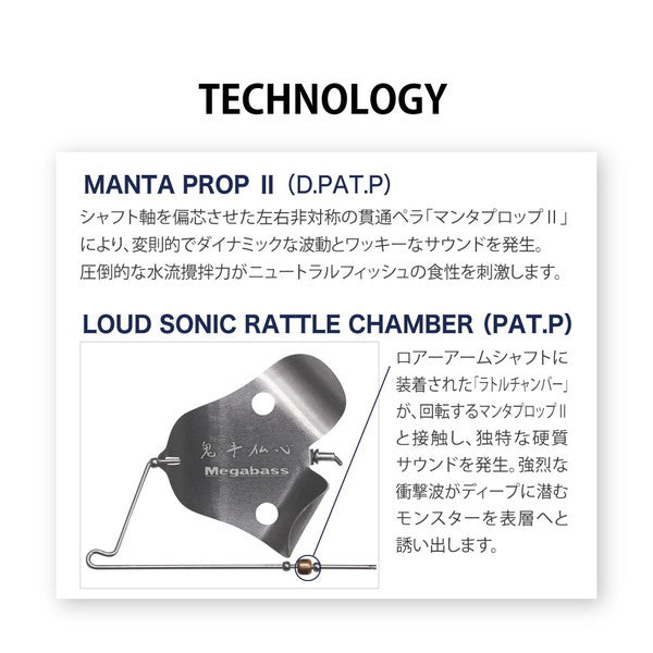 The Manta Prop's outstanding fish-attracting effect, which accurately appeals to bass scattered over a wide area, was also praised by top-category professionals. This is one of the reasons why the Jamaica Boa is used as a secret bait when you want to check whether there are bass in a wide shallow area.