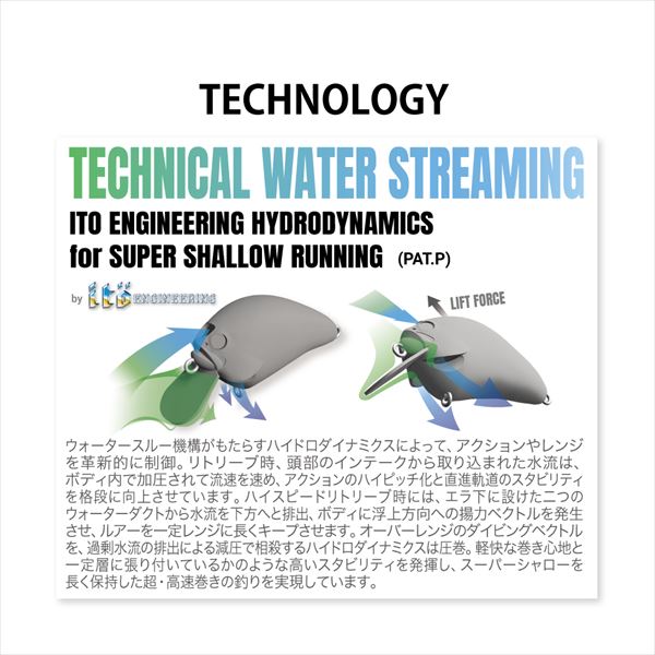 It's like a sonic boom generator, forcing bass living near the reeling path to action. The IxI Blowly produces an action pitch that surpasses that of classic balsa crankbaits at any reeling speed. The IxI Blowly's unique body format, which expands its overall projected area, and its unparalleled water-through design combine to deliver exceptional cranking performance.