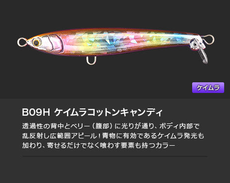 Even though it is a sinking pencil plug, it does not jump out of the water surface even with fast reeling, and you can attack with a buzzing technique that is effective for targeting yellow tail fish.