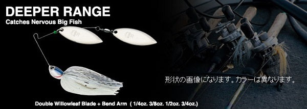 Generally, to reduce the strength of a spinnerbait, methods are used to reduce the vibration by reducing the number of blades or reducing the size, but this also results in the loss of flashing. On the other hand, the Deeper Range achieves a unique bending wire setting without reducing the blade size.