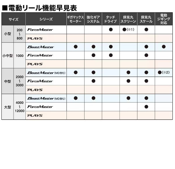 With PE line #4 and a line capacity of 400m, the Force Master 2000 targets yellowtail fish, big seabream, and big squid. In addition, it covers a wide range of fields from nearshore to deep-water fields.