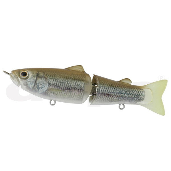 This big bait has a hollow core made from ABS resin, a sublimated body material, and is covered in a realistic soft shell. With its unique soft sound, soft vibrations and texture that are as close to the real thing as possible, it realistically recreates the image of a defenseless swimming baitfish or a dying baitfish when straight reeled, and it induces a bite with quick twitches and jerks that respond to rod operation.