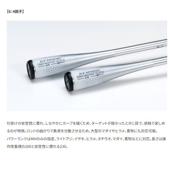 Total length: 2.30m /Joint: 2 /Closed length: 118.6cm /Weight: 150g /Tip diameter: 1.2mm /Sinker weight load: #20-#80 /Reel seat position: 421mm /Reel seat type: Down Lock /Carbon content: 94.4%