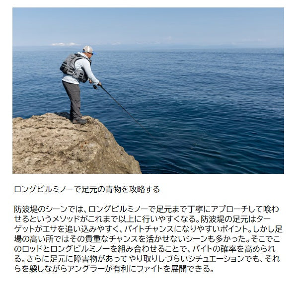 By generously incorporating technology developed in high-end models, this rod achieves a perfect balance between lightness when casting and maneuvering, and a powerful fight, creating a new world of shore jigging.